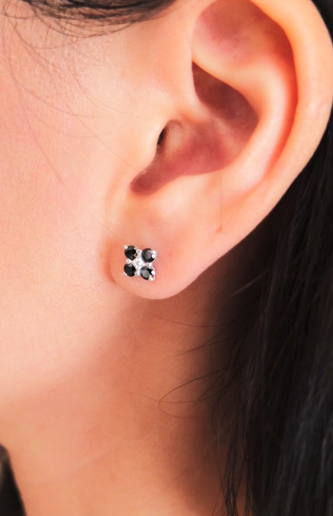 デザインは花びらに見立てたブラック石と小さなホワイト(クリア)石の色合いがとても合っていて品があり高級感があります。