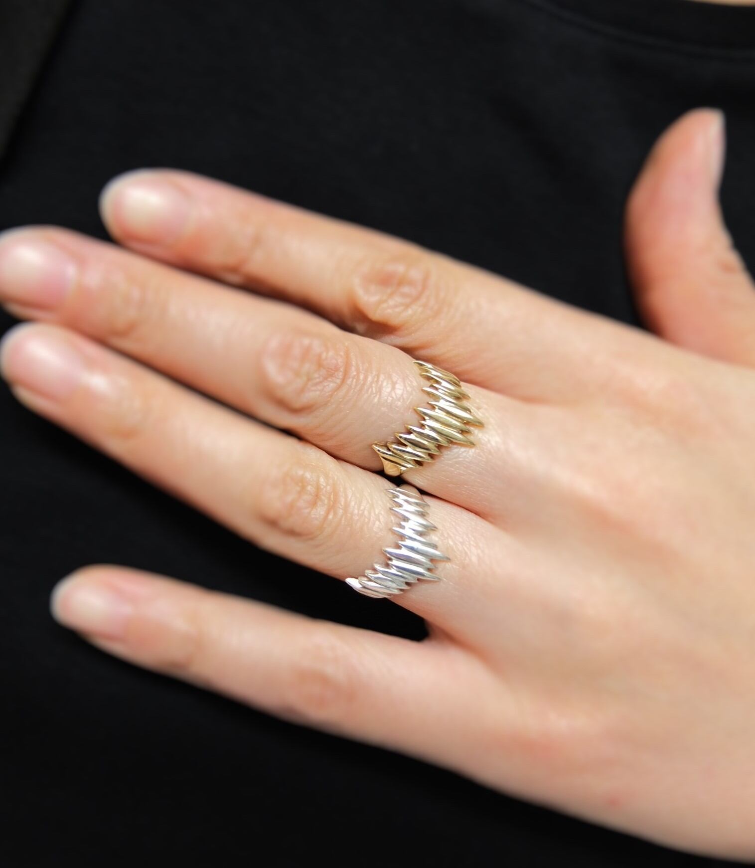 こちらの商品は尖ったマーキス状のピースを高さや大きさを変え、複数削りだしました。