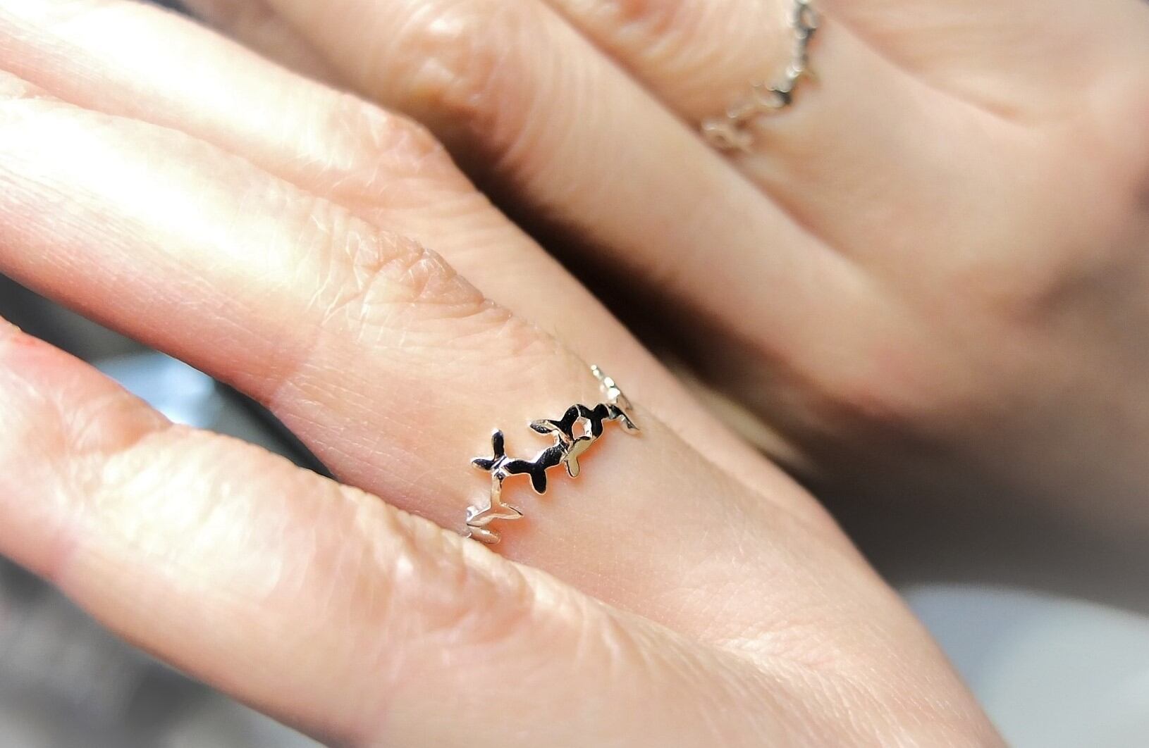 こちらは葉絨毯のキレイな流れの一部分を切り取り、指にまとわせるようにイメージして作った商品です。