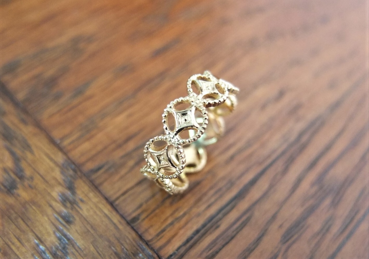 フィレンツェ彫りやヨーロッパのアンティークリングを思わせるデザインになっています。