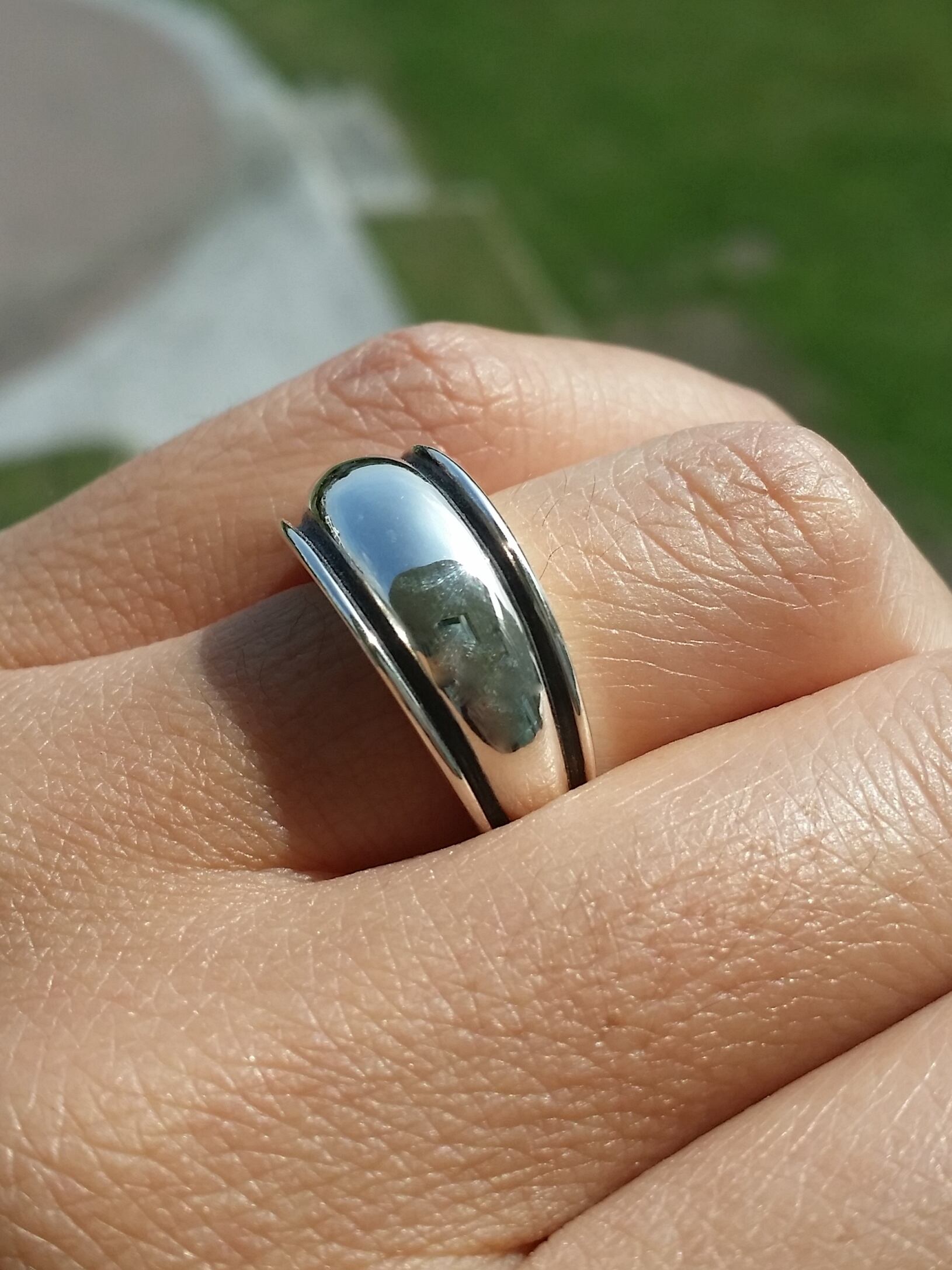 燻し加工をしていることにより、シルバーの持つ独特の風合いが出ています 更に自分だけの味のあるリングになっていくと思います