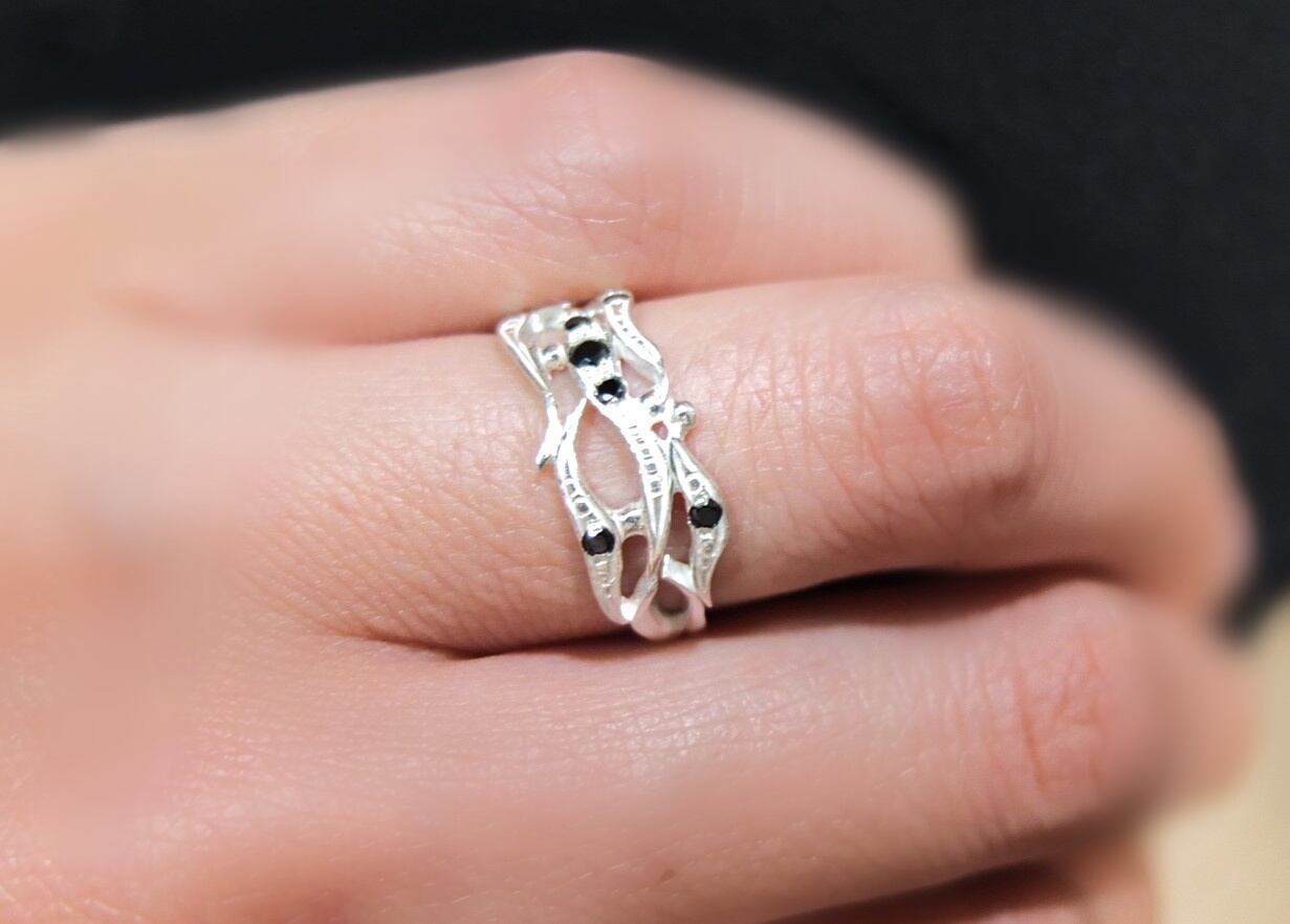 石は2パターン用意しています。1つはキュービックジルコニアブラック石です、もう1つはオニキス石です。