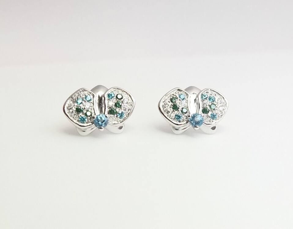 花びらに散りばめたのは深い色のグリーンと明るいミントグリーンのスワロフスキーでとても爽やかな印象の中にも可愛さを持ち合わせたピアスです。