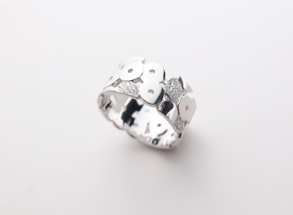 実際のスパンコールを使用したリングなどはよくありますが、シルバーなどで作られているリングというのは少ないかと思います。